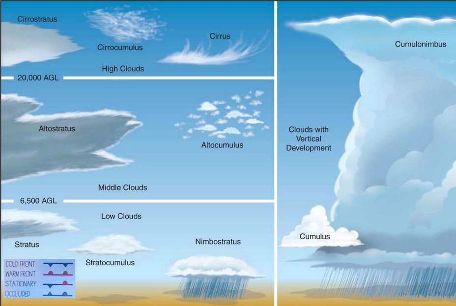 Nuvens em camadas em qualquer dessas altitudes geralmente indicam que o